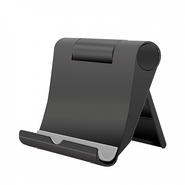 Держатель для смартфона RayGood в черном цвете – это удобный гаджет, с помощью которого можно удобно разместить смартфон или планшет на столе, чтобы смотреть фильмы, сериалы или видео. Нескользящий силиконовый материал эффективно защитит ваш смартфон или планшет от царапин. Плоское основание гарантирует удобное размещение подставки. Регулируемый угол наклона: держатель раскладывается на 270°, позволяя подобрать оптимальное положение телефона и планшета на держателе. Складная конструкция позволяет легко переносить девайс, чтобы пользоваться им на работе или учебе. Держатель изготовлен из качественного ABS пластика, что делает его очень прочным и долговечным.
