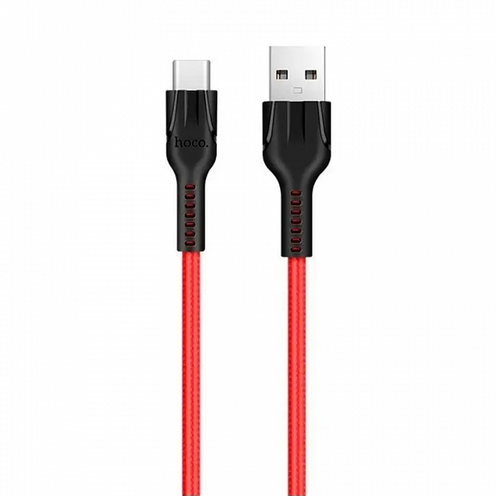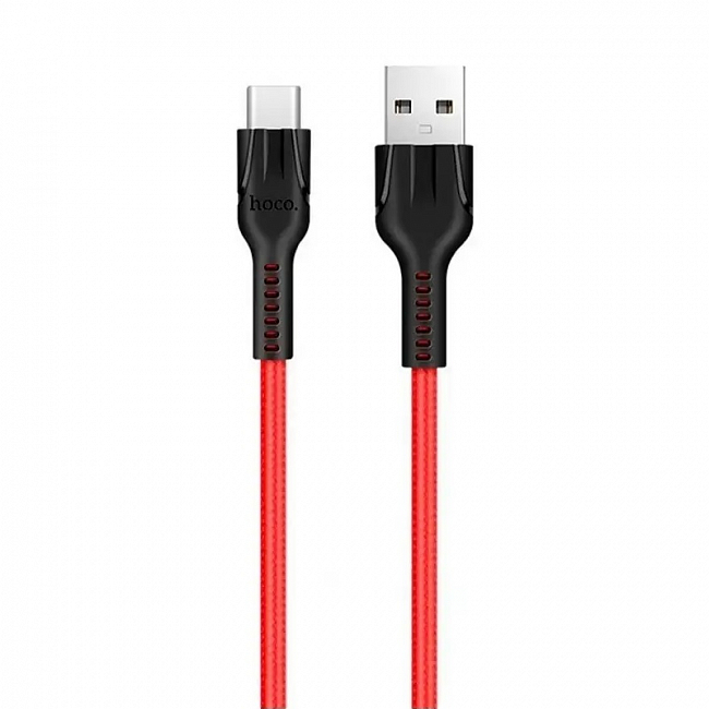 hoco U31 USB вилка - Type-C вилка, 3A, нейлон, красный, 1м
