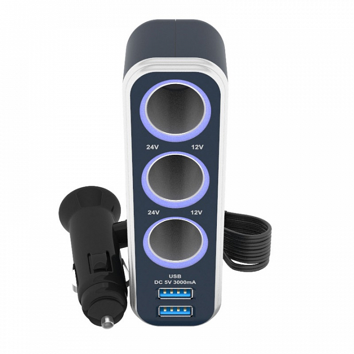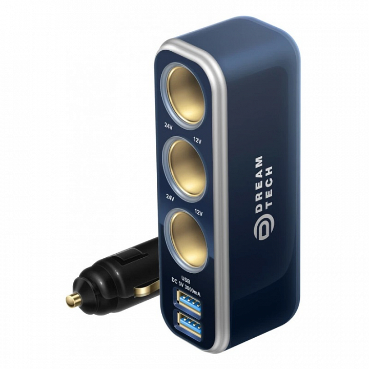 Разветвитель для прикуривателя Dream WF-0963 3А 3 гнезда + 2USB, черный