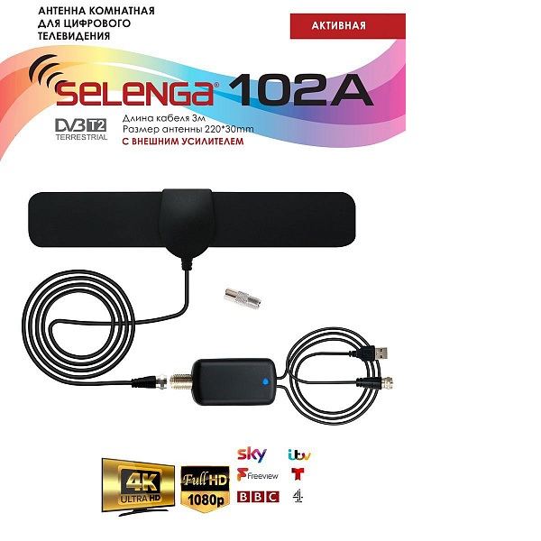 Антенна телевизионная комнатная с усилителем Selenga 102A