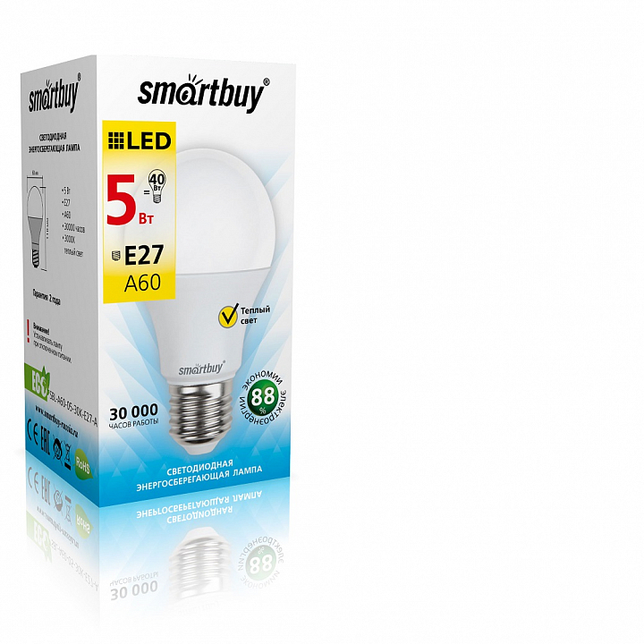 SMARTBUY лампа A60 5W 3000K E27